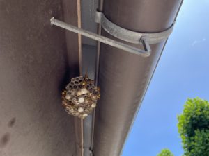 アシナガバチ駆除及び巣の撤去をおこないました。高さは大体2m程でした。雨樋の下に巣を作っておりました。